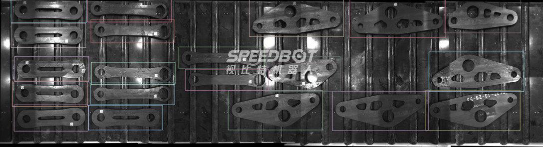针对桁架分拣场景中分拣作业区域广、工件尺寸差异大、相机覆盖视野小、识别定位精度低等难点,本产品基于AI+视觉技术,融合了多源协同高精度图像拼接,多尺度图像目标检测和方向自适应任意目标识别等核心技术,能够有效应对复杂背景下不同尺寸(400mm-mm)工件的识别分拣,视野覆盖可达12米,实现对超大视野下工件的精准识别和定位。